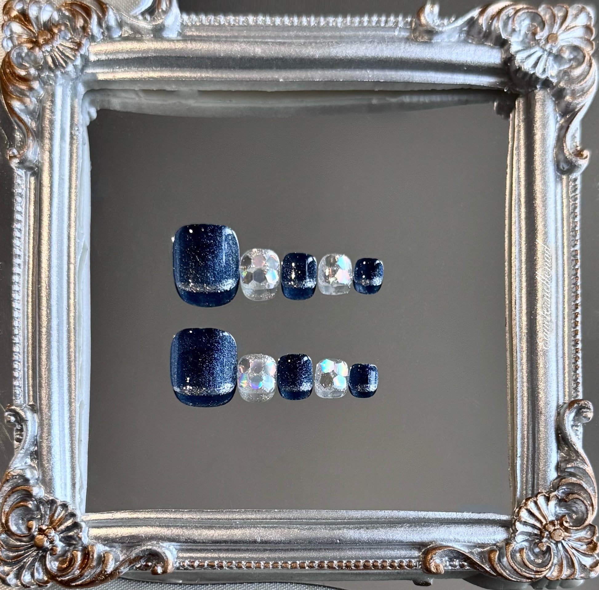 Twilight Serenade is inspired by the tranquil beauty of evening skies, with a rich cobalt blue base that shimmers with hints of sapphire under the light. Subtle silver accents and a delicate gradient effect create a dreamy, ethereal look, reminiscent of moonlit reflections on water. The smooth, high-gloss finish enhances its depth, while radiscent flakes add a touch of stardust-like sparkle. Perfect for evening gatherings, elegant dinners, or any occasion that calls for a touch of midnight elegance.